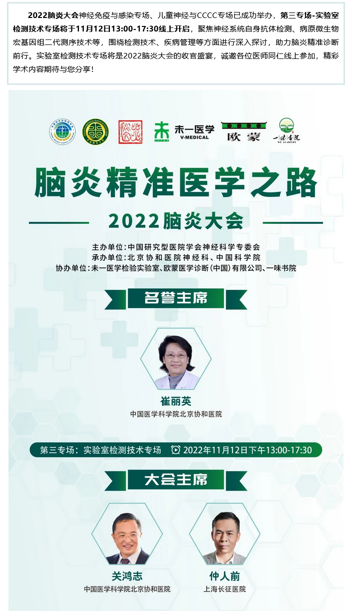 【会议预告】2022脑炎大会|实验室检测技术专场与您相约