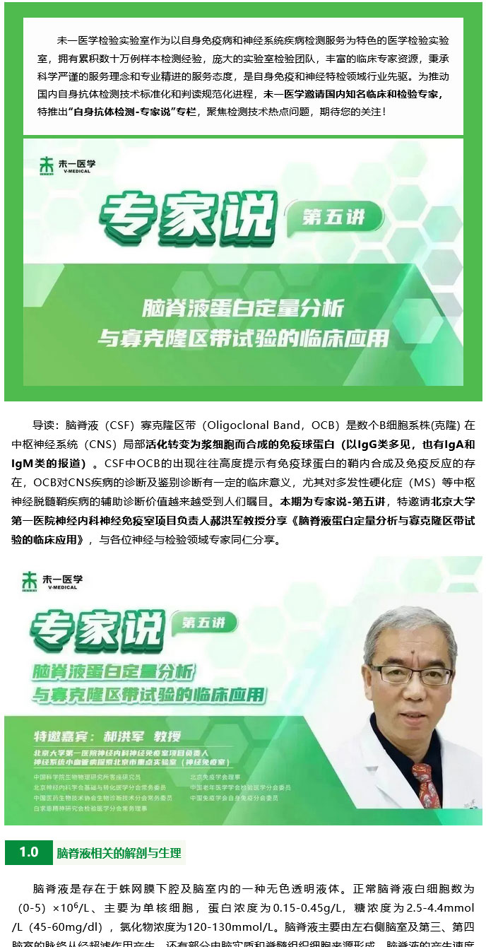 【专家说第五讲】脑脊液蛋白定量分析与寡克隆区带试验的临床应用