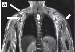 四肢近端肌肉等出现炎性渗出表现。