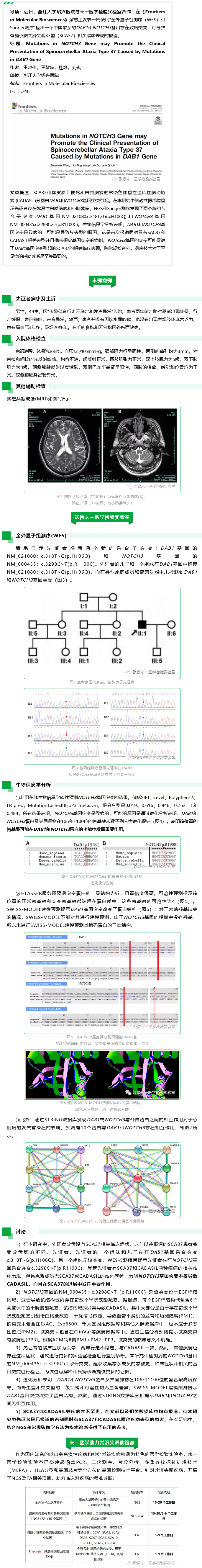 【文章发表】浙江大学绍兴医院通过“未一全外显子组测序平台”精准检测脊髓小脑共济失调37型1例