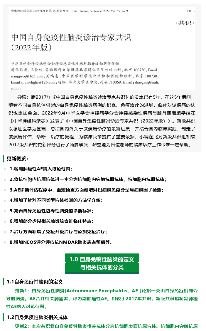 【共识解读】中国自身免疫性脑炎诊治专家共识(2022年版)