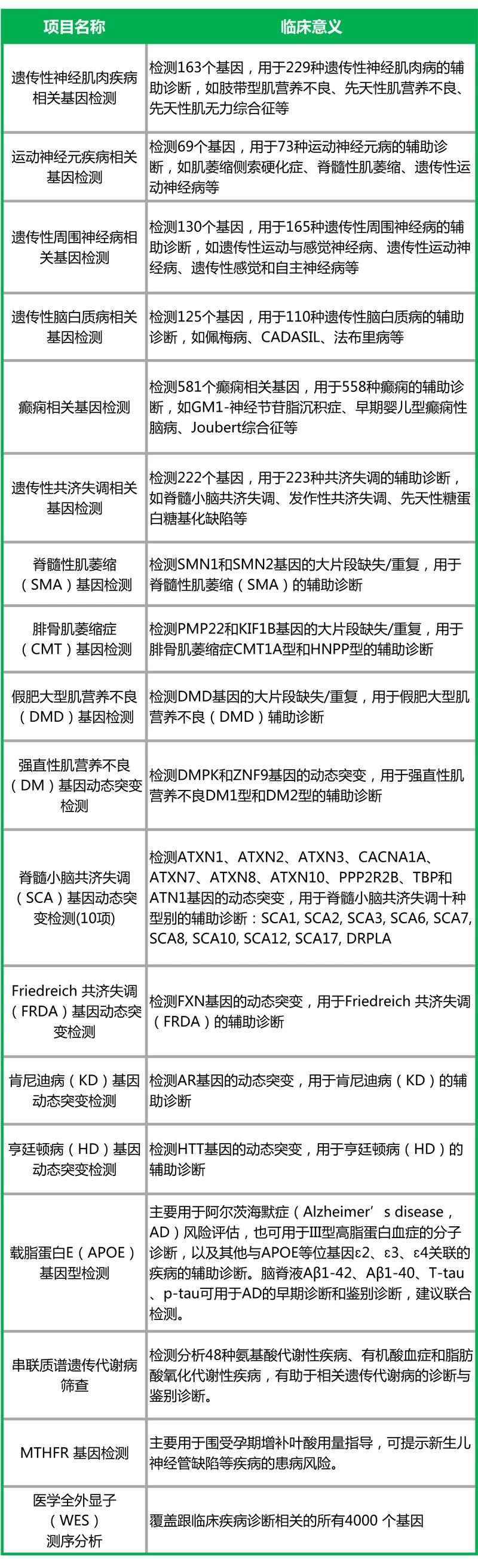 神经相关疾病检测项目